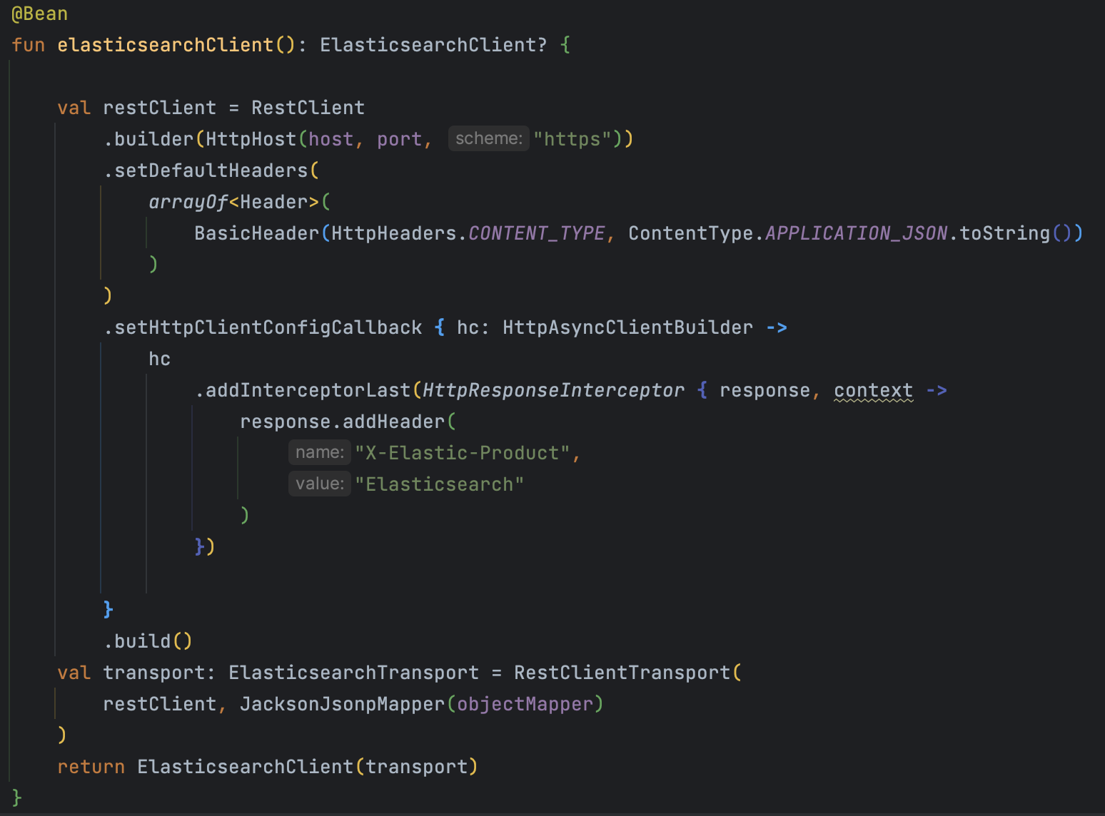 Caused by: co.elastic.clients.transport.TransportException: [es/search] Missing [X-Elastic-Product] header. Please check that you are connecting to an Elasticsearch instance, and that any networking filters are preserving that header.