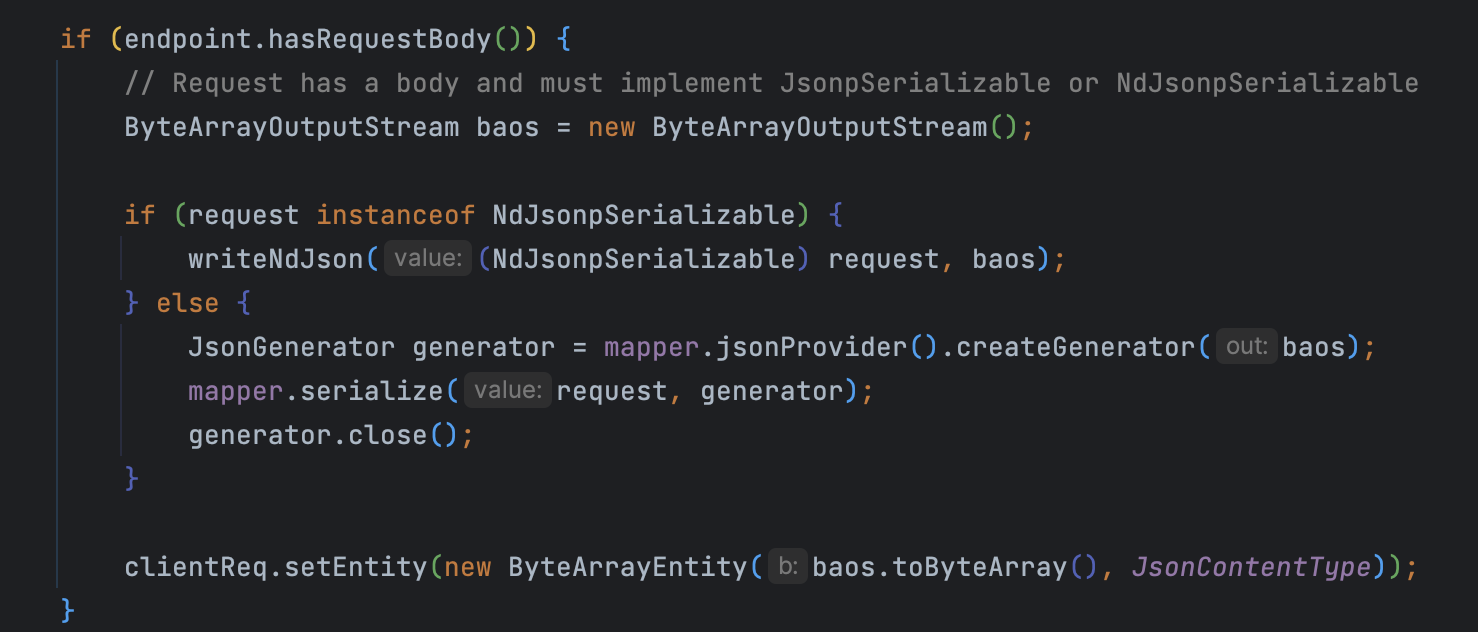 그렇다. entity가 elasticClient의 query였고, entity는 RestClientTransPort에서 바이트코드 화하는 것이었다.